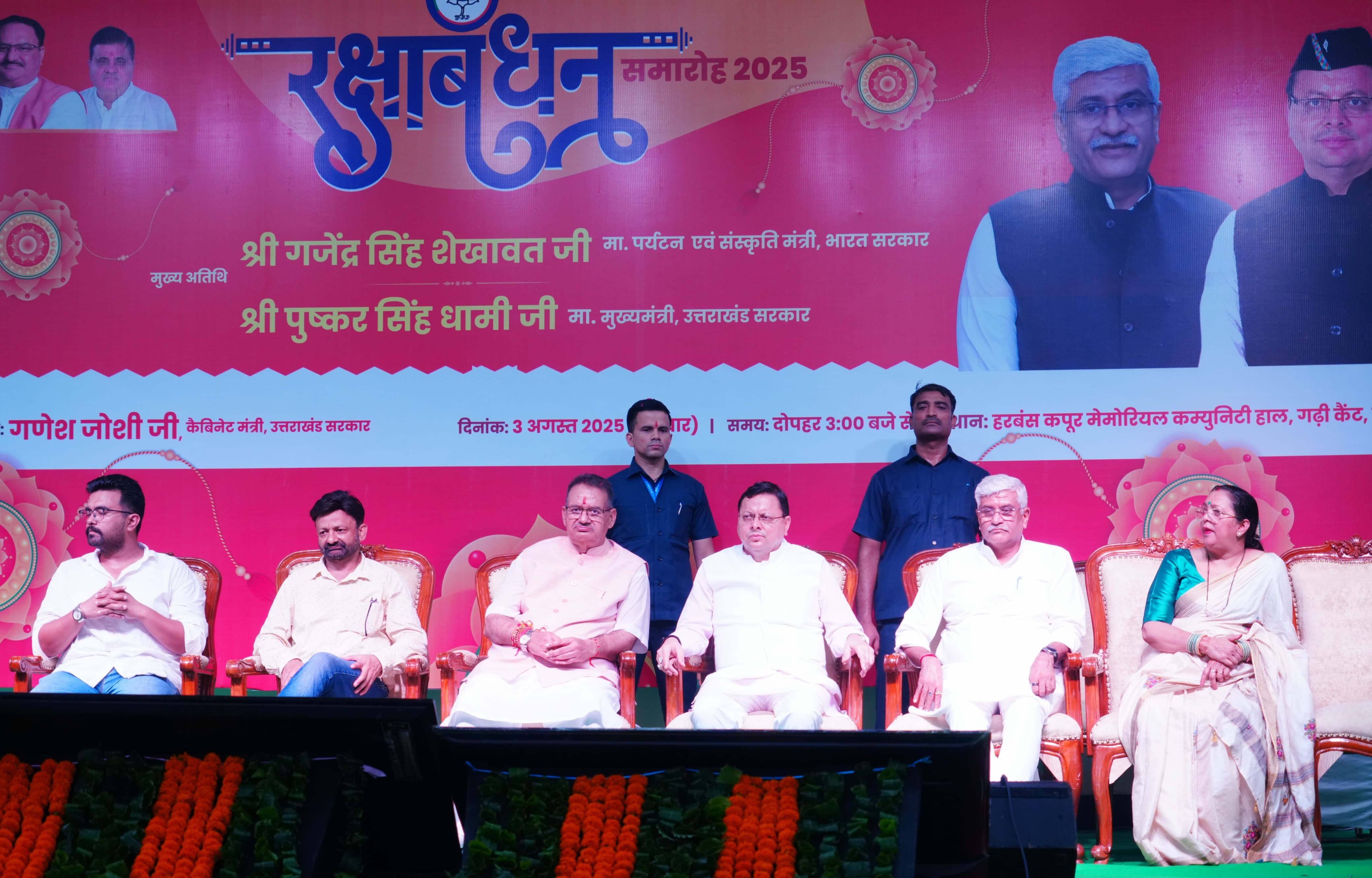 मुख्यमंत्री पुष्कर सिंह धामी रविवार को केंद्रीय संस्कृति एवं पर्यटन मंत्री गजेंद्र सिंह शेखावत की उपस्थिति में हरबंस कपूर मेमोरियल कम्युनिटी हॉल, गढ़ीकैंट,देहरादून में आयोजित रक्षाबंधन समारोह 2025 में सम्मिलित हुए ।
