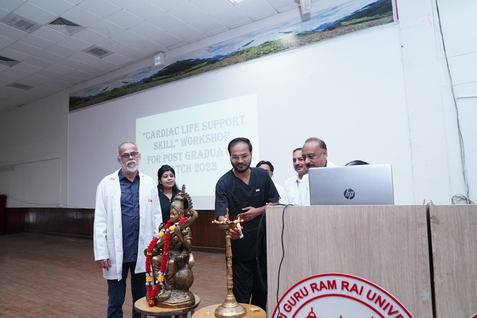 देहरादून। श्री गुरु राम राय इंस्टीट्यूट ऑफ मेडिकल एंड हेल्थ साइंसेज एवं श्री महंत इन्दिरेश अस्पताल में गुरुवार को कार्डियक लाइफ सपोर्ट व सीपीआर पर एक दिवसीय कार्यशाला आयोजित की गई। कार्यशाला का उद्देश्य डॉक्टरों एवं पीजी विद्यार्थियों को आपातकालीन स्थितियों में जीवन रक्षक तकनीकों से प्रशिक्षित करना था।