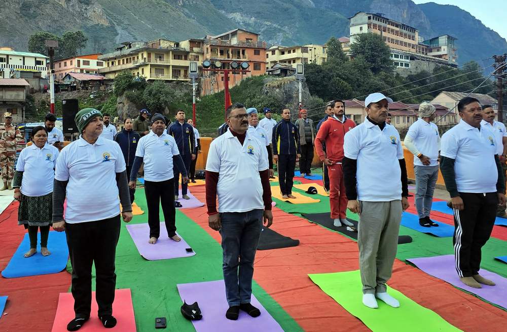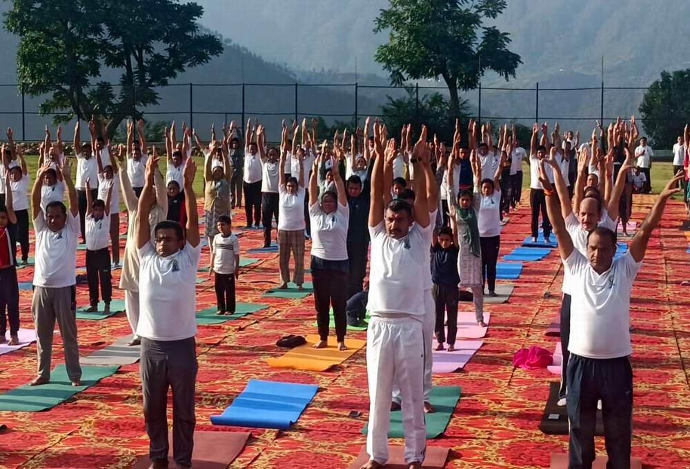 गोपेश्वर में शुक्रवार को आयुर्वेदिक व यूनानी विभाग की ओर से गोपेश्वर पुलिस मैदान में योग प्रशिक्षण कार्यक्रम आयोजित किया गया। विभाग की ओर गोपेश्वर में बीती 15 जून से योग प्रशिक्षण शिविर का आयोजन किया जा रहा था। अंतर्राष्ट्रीय योग दिवस पर आयोजित कार्यक्रम का शुभारंभ जिलाधिकारी हिमांशु खुराना ने दीप प्रज्वलित कर किया। उन्होंने कहा कि योग व्यक्ति के शरीर में ऊर्जा का संचार होता है। जिससे व्यक्ति स्वस्थ शरीर के साथ ही ऊर्जा प्राप्त करता है। जिससे व्यक्ति की कार्य क्षमता में वृद्धि होती है। बताया कि जिले में बदरीनाथ धाम के साथ ही जिले के सभी आयुष्मान आरोग्य मंदिरों में योग कार्यक्रम आयोजित किए गए। इस मौके पर जिला आुयर्वेदिक एवं यूनानी अधिकारी डा. सुनील कुमार रतूड़ी ने बताया कि अंतर्राष्ट्रीय योग दिवस पर आचार संहित के नियमों का अनुपालन करते हुए जनपद में कार्यक्रम आयोजित किए गए हैं।